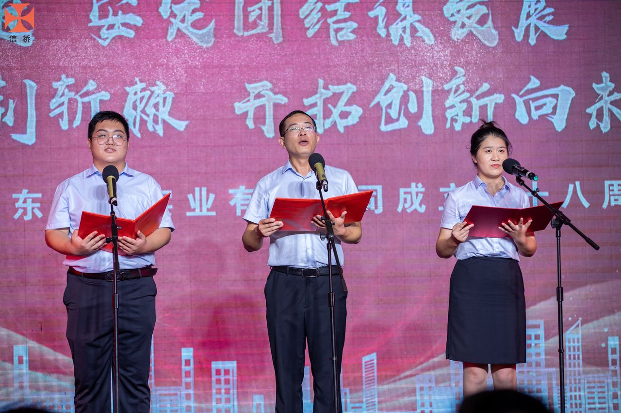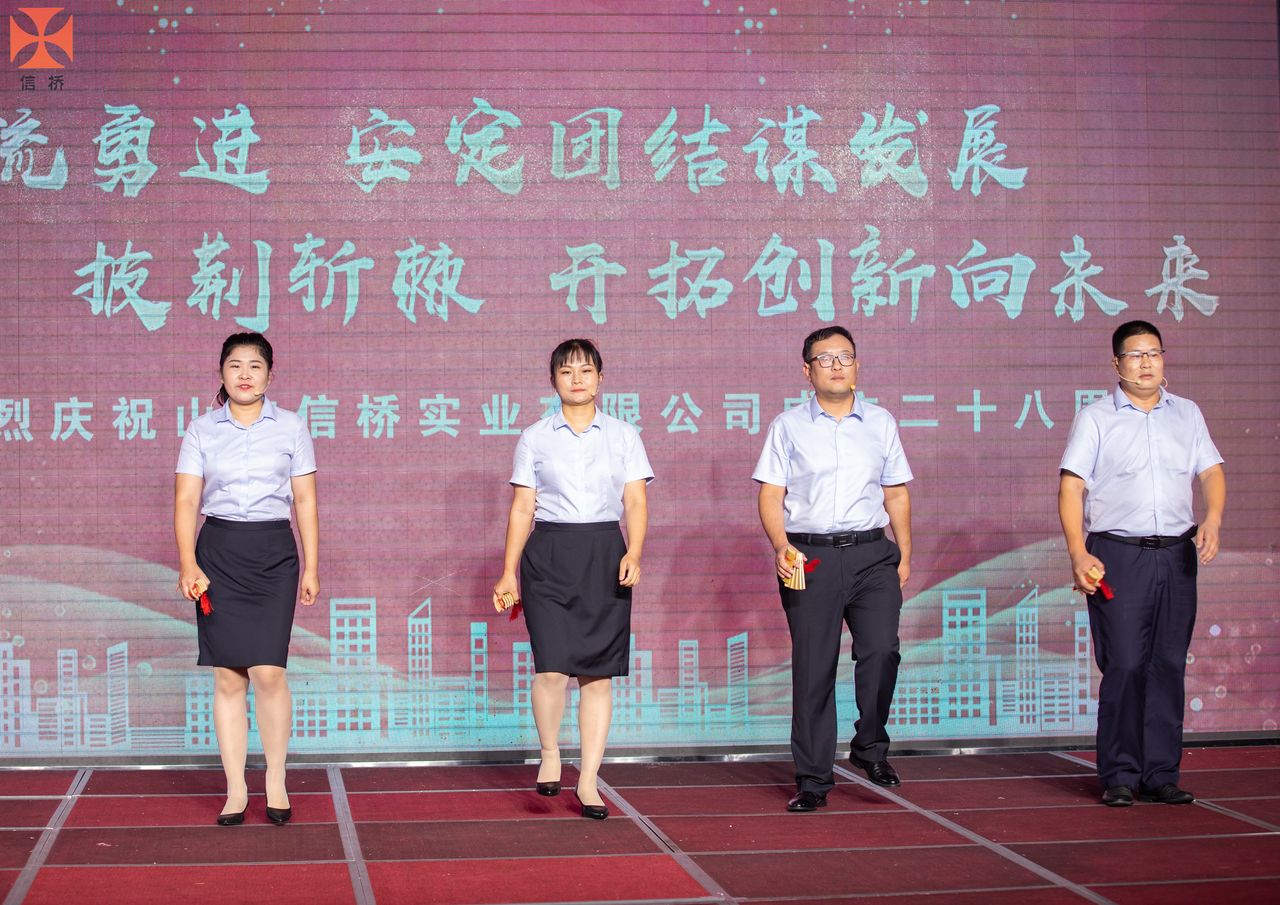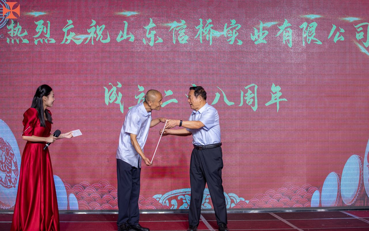 歲月如歌,風(fēng)霜如畫,二十八年彈指一揮間,山東信橋?qū)崢I(yè)有限公司(以下簡稱山東信橋)迎來了二十八周歲的生日。二十八年來,信橋人在激烈的市場競爭中奮力拼搏、砥礪前行,接受了市場風(fēng)風(fēng)雨雨的洗禮,取得了累累碩果。為了慶祝這一特殊的日子,2022年8月8日,以“激流勇進(jìn),安定團(tuán)結(jié)謀發(fā)展 披荊斬棘,開拓創(chuàng)新向未來”為主題的山東信橋二十八周年慶典活動(dòng)在寶盛大酒店舉行。